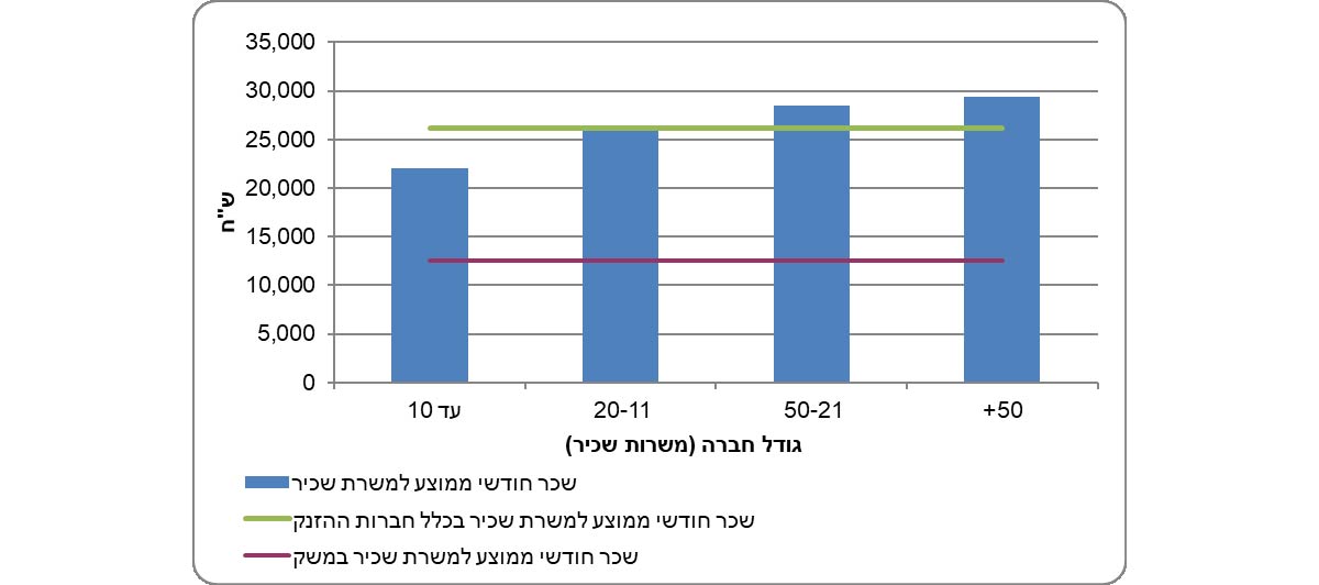 תרשים 3 - שכר חודשי ממוצע למשרת שכיר בחברות הזנק לפי גודל חברה, 2023