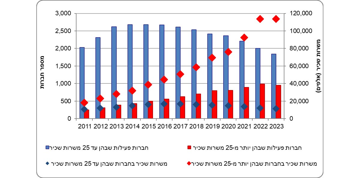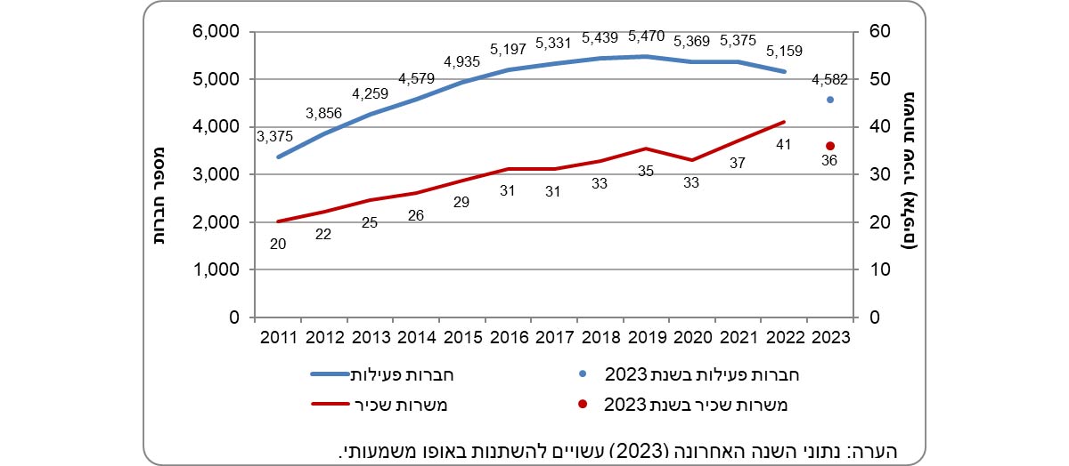תרשים 7 - חברות פעילות בשלות ומשרות שכיר, 2023-2011