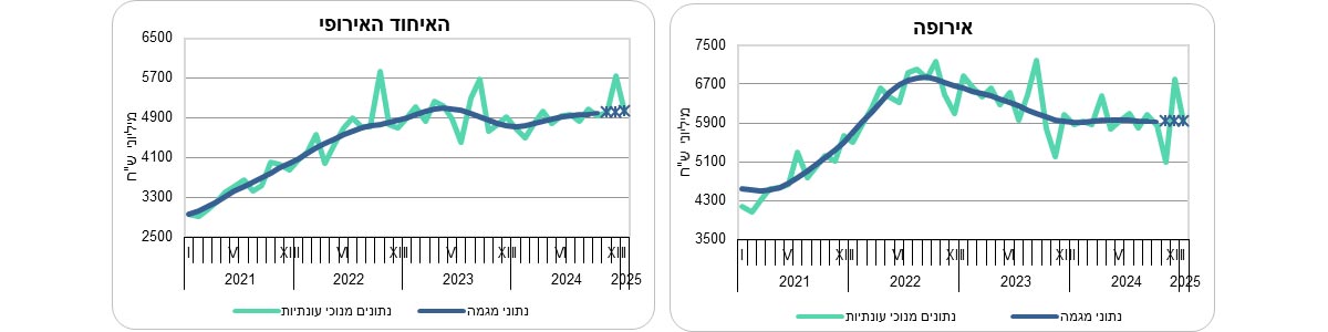נתוני המגמה בחודשים האחרונים (נובמבר 2024 עד ינואר 2025): עלייה של2.9% ביצוא הסחורות לאיחוד האירופי ועלייה של 58.7% ביבוא הסחורות מסין.