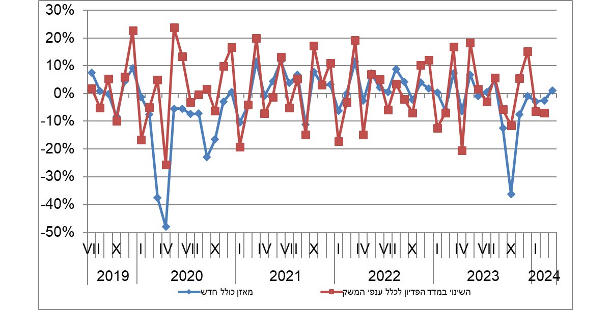 מאזן כולל ושינוי במדד הפדיון לכל ענפי המשק (נתונים מקוריים במחירים קבועים)
