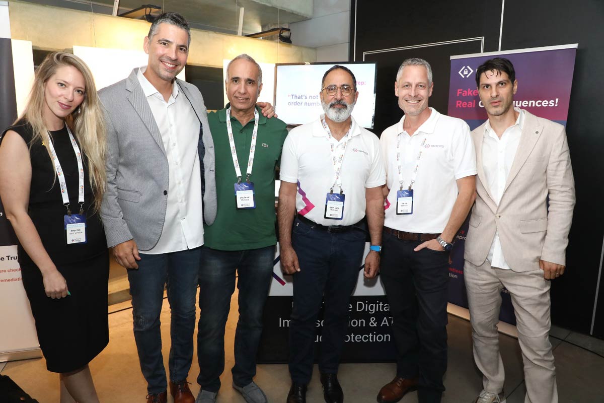 מימין לשמאל: נמרוד עמיר, VP Security & Innovation, אינטגריטי תוכנה, ערן צור, CMO, Memcyco, גדעון חזם, Co-Founder, COO & CCO, Memcyco, ישראל מזין, Co-Founder, CEO & Chairman, Memcyco, אורן קרוג, מנכ"ל אינטגריטי תוכנה, אנה יפרח, VP Sales, אינטגריטי תוכנה. צילום: ניב קנטור.
