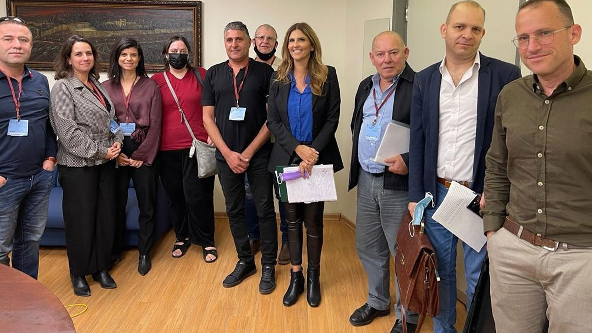 ח"כ מגן תלם עם נציגים מאיגוד המהנדסים לבניה ולתשתיות; רשם המהנדסים והאדריכלים; מרכז השלטון המקומי; המכון הלאומי לחקר הבניה; התאחדות הקבלנים בוני הארץ; מהנדסת העיר בת-ים; האגודה לתרבות הדיור.