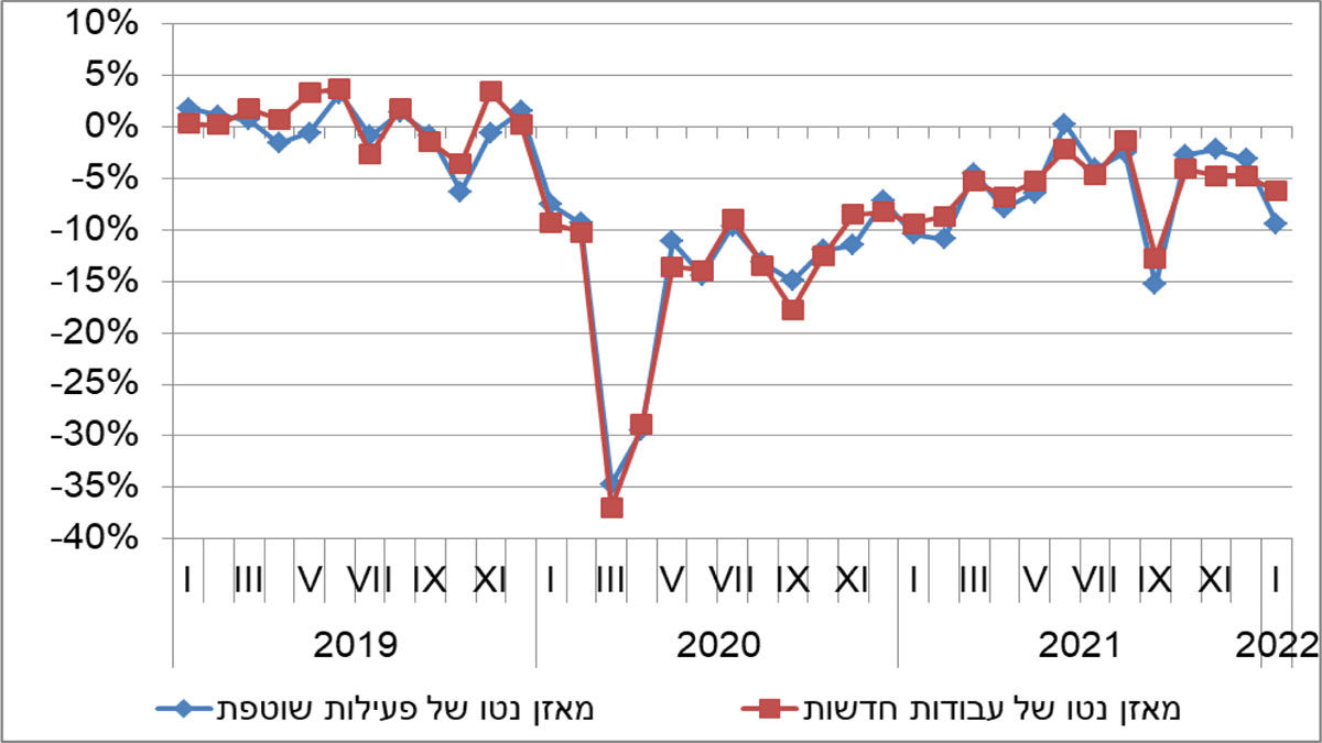 | היקף העבודות החדשות (שטח התחלות הבנייה/היקף ההזמנות) | -1.3 | -12.7 | -4.0 | -4.7 | -4.7 | -6.2 |