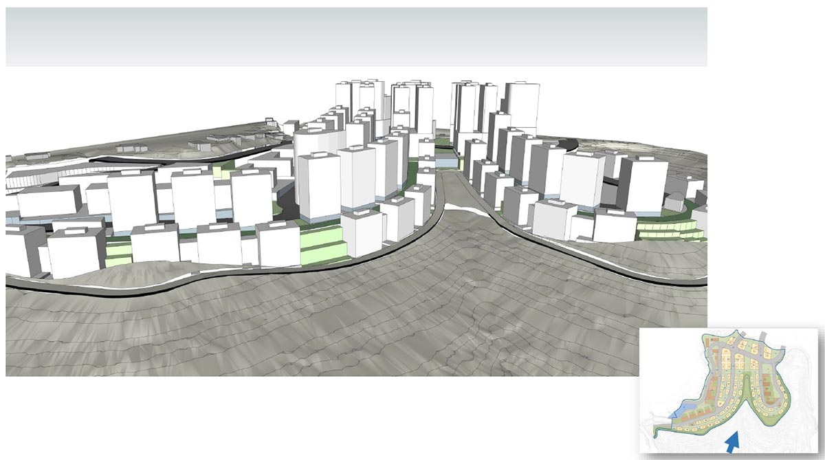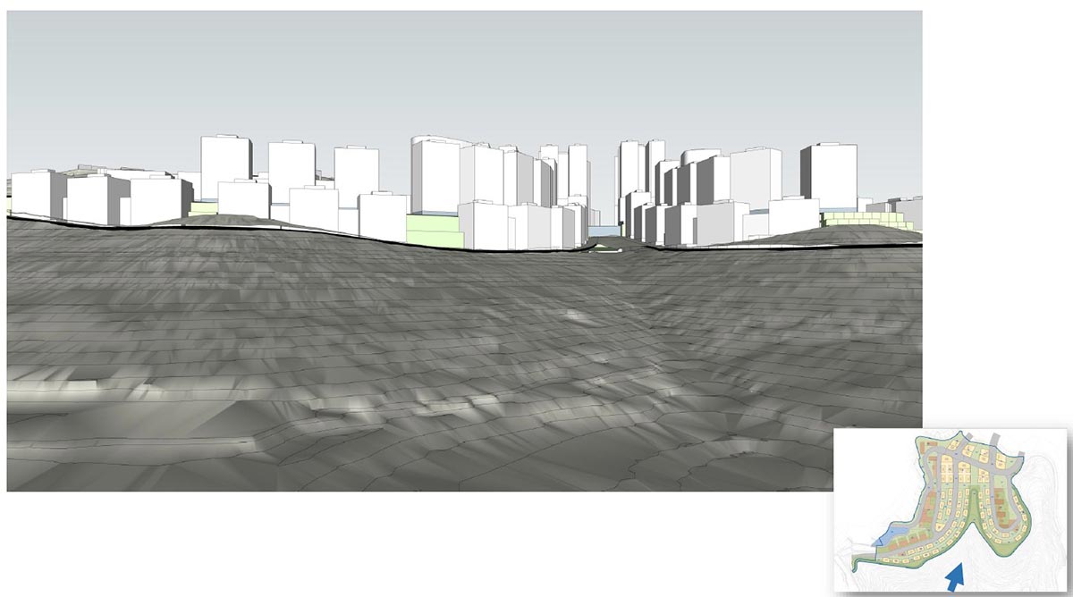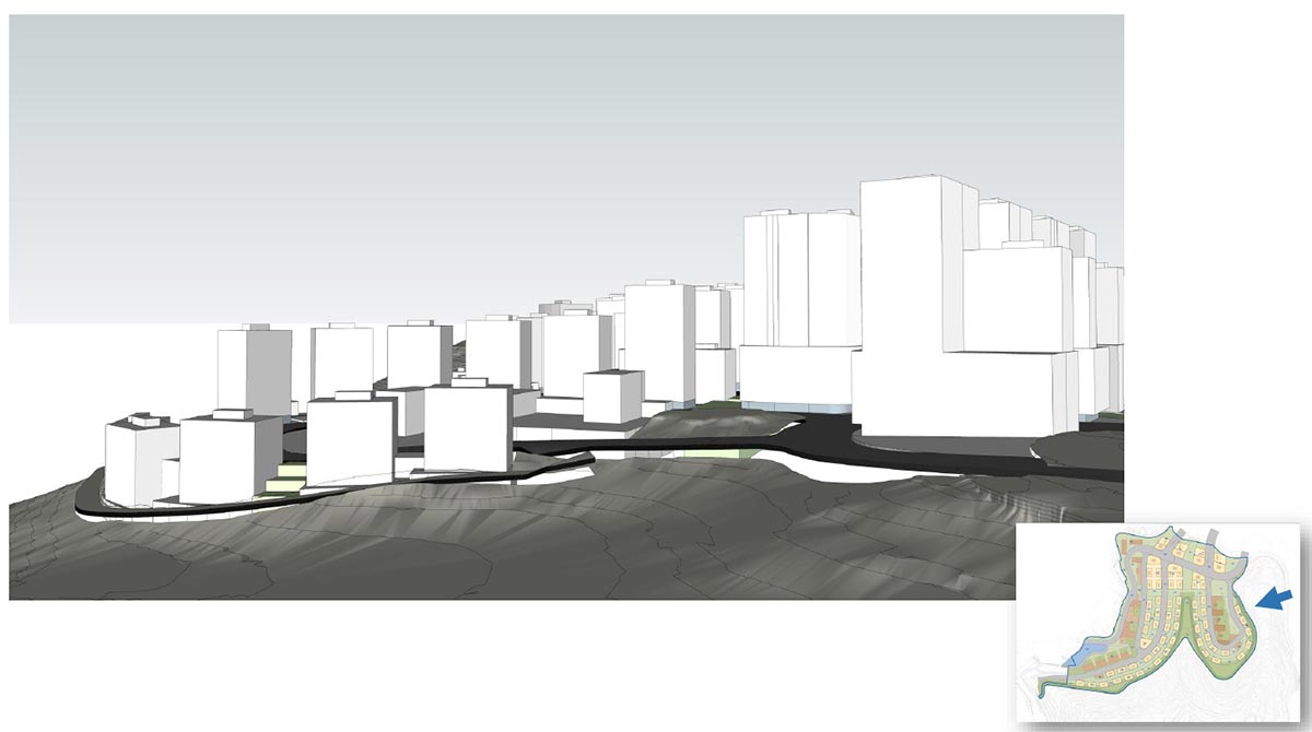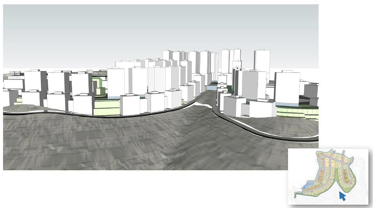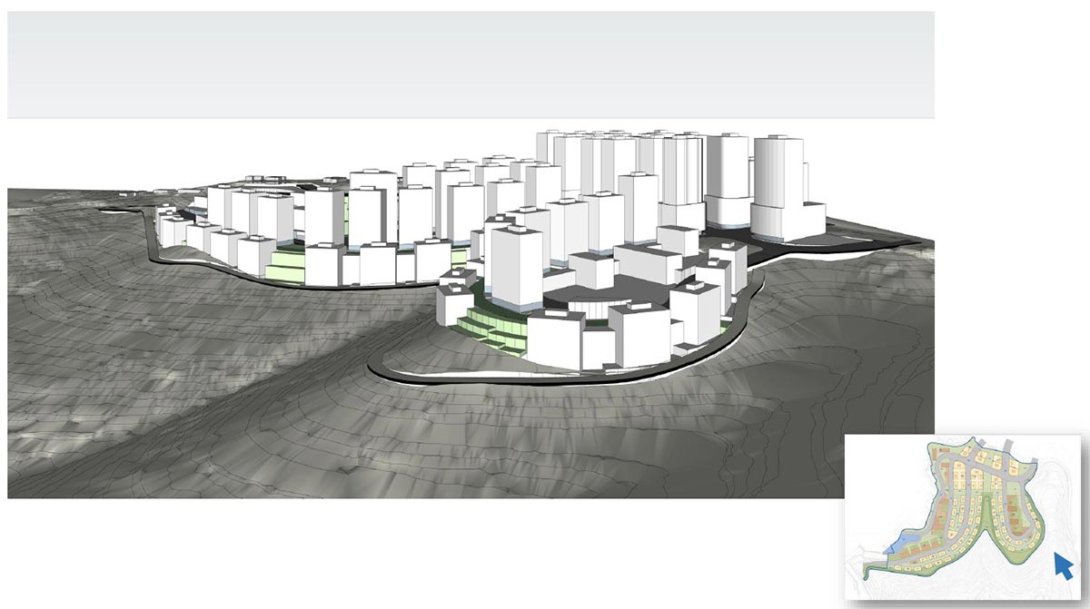 שכונת המגורים החדשה תכלול כ-6,000 יח"ד, בתמהיל מגוון, מתוכן כ-30% דירות קטנות (עד 80 מ"ר) וכ-5% דירות קטנות מאד (עד 55 מ"ר). צפיפות המגורים מוצע בכ-55 יח"ד לדונם נטו בבניינים בני 8-24 קומות כאשר התכנון מאופיין בפיתוח לאורך המורדות באמצעות בלוקים מוארכים, תוך יצירת שטח ציבורי איכותי במרכזם, הכולל שטחים ירוקים וחזיתות פעילות בקומות הקרקע של מבני המגורים.