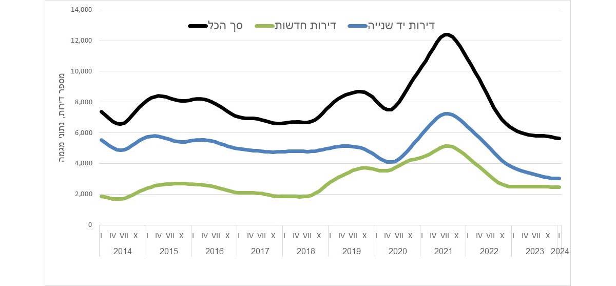 תרשים 2 - סך הדירות שנמכרו, נתוני מגמה, 2024-2014