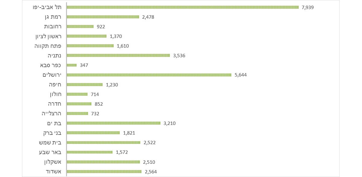 | תל אביב-יפו | 358 | 266 | 34.8 | באר שבע | 617 | 526 | 17.2 | |