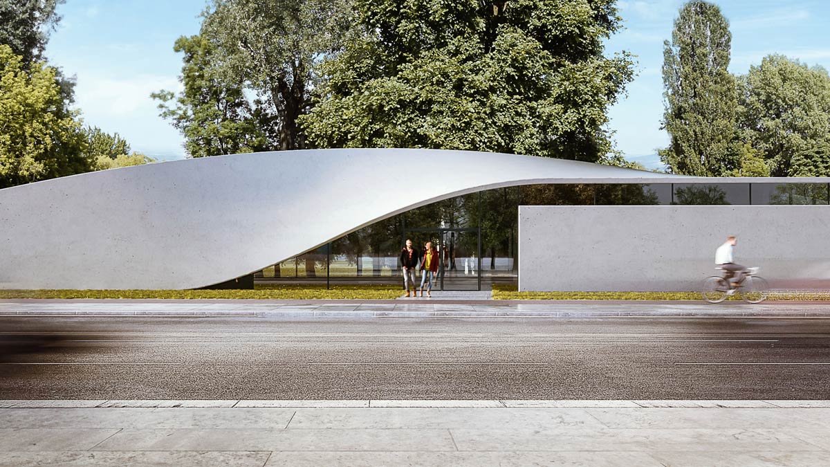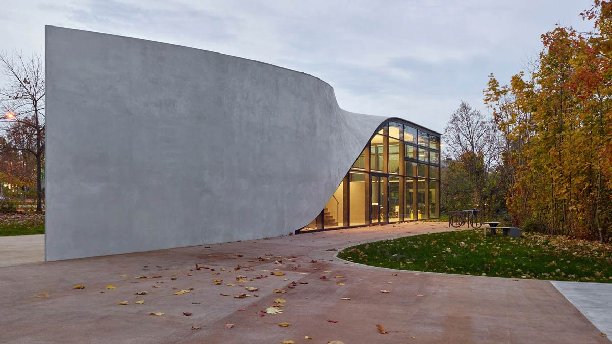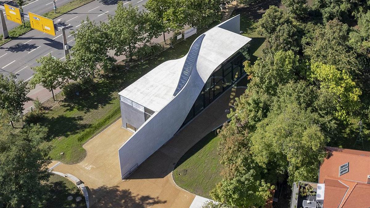 את עיצוב הקובייה הגה Henn בשיתוף עם המכון לבנייה מוצקה ב-TU Dresden, בראשות פרופסור מנפרד קורבך. בהשראת התכונות הקלות והגמישות של סיבי פחמן, צורת הבניין כוללת קיר מתקפל שנהפך לגג, הממזג באופן חלק את התקרה והקירות לצורה אחת.