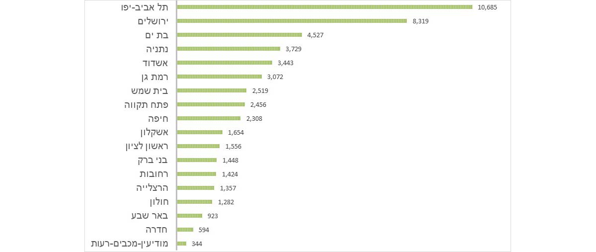 | תל אביב־יפו | 561 | 455 | 23.3 |