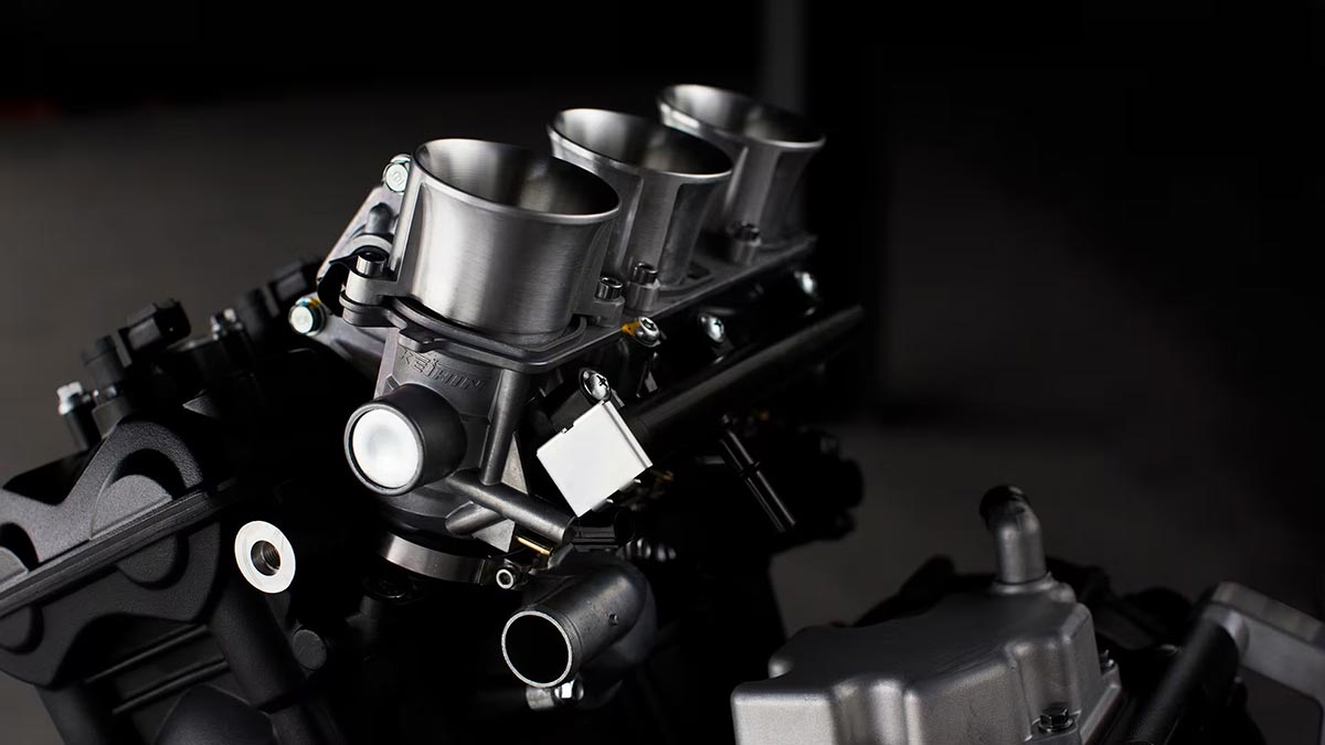 למנוע החדש בסיס מנוע מדגם סטריט טריפל (Street Triple RS), נפח של 765 סמ"ק, עוצמה של 140 כ"ס וכמה שיפורים טכניים מהותיים. מלבד מבנה חדש של תיבת ההילוכים, למנוע ראש צילינדר משודרג וערכת אלטרנטורים חדשה שמפחיתה את אפקט האינרציה. למנוע יחידת בקרה אלקטרונית ייחודית שפותחה בשיתוף פעולה טכני עם חברת מגנטי מרלי (Magnetti Marelli).