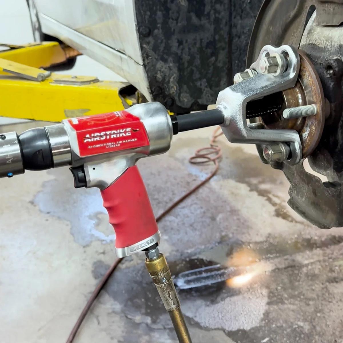 מסיבה זו יוצר טומי 475 Tommy 475 Wheel Hub Puller)) - מערכת חכמה ויעילה שמאפשרת להסיר יחידות נאבה במהירות, בדיוק ובביטחון, בלי להפעיל כוח רב. טומי עובד עם פטיש אוויר דו־צדדי הפועל בעוצמה של 3,000 פעימות לדקה. יחד הם יוצרים מערכת שליפה ישרה ונקייה, ללא מכות, ללא עיקום ברגים וללא נזק לרכיבים מכניים עדינים. החיבור של הכלי לאוגן הנאבה מאפשר משיכה אחידה בקו מרכזי, מה שמבטיח שליפה מדויקת גם כאשר המסב תפוס בחוזקה.