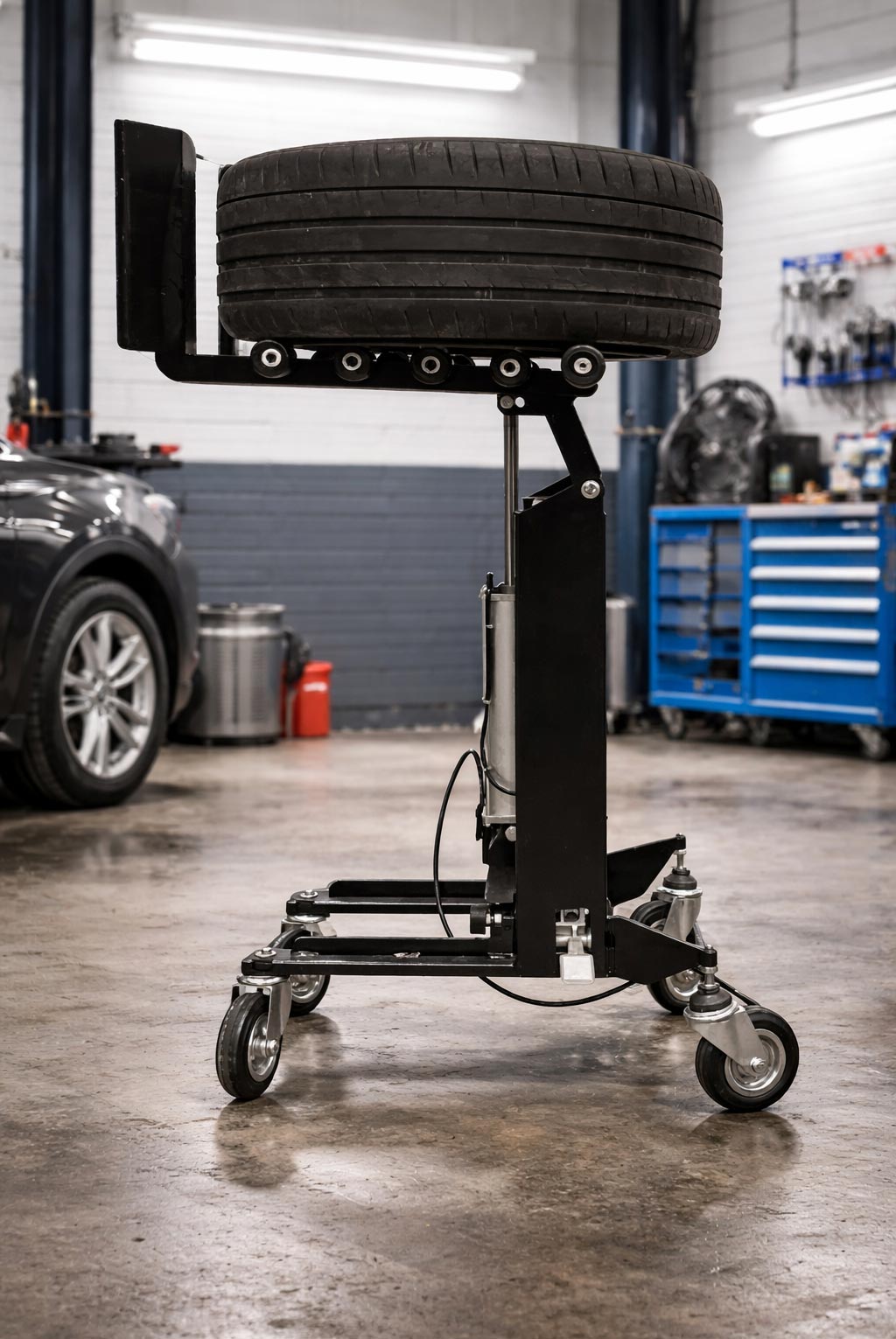 מערכת ההרמה הפנאומטית בנויה להענקת עוצמה ודיוק מרביים, ומסוגלת לשאת את חישוקי הסגסוגת הכבדים ביותר, כולל אלו של רכבי שטח עם הנעת ארבעה גלגלים ורכבים מסחריים. המיתקן מגיע לגובה הרמה מרבי של 91.5 סנטימטרים, ובכך שילוב חלק ונוח עם ציוד קצה נוסף כגון מחרטות ייעודיות, מכונות צביעה מתקדמות ומערכות ניקוי בהתזת מים.