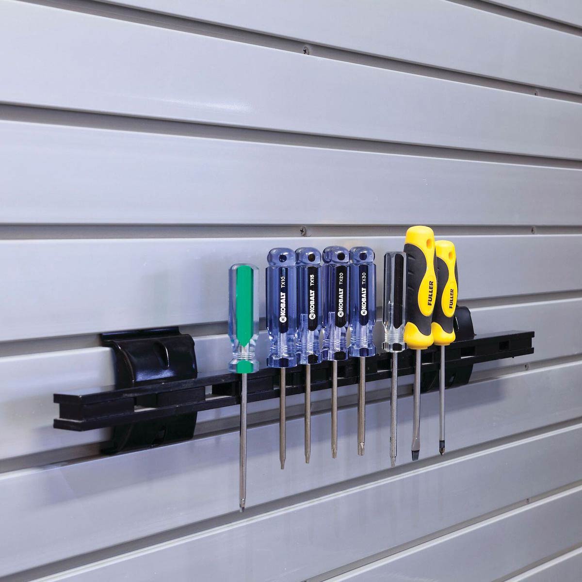 מעבר לארונות, כדאי לנצל את קירות המוסך לאחסון. תלייה של כלי יד על מערכת תלייה מודולרית שומרת על נגישות גבוהה, מפנה מקום על הרצפה ומאפשרת שינוי וסידור מחדש לפי הצורך.
