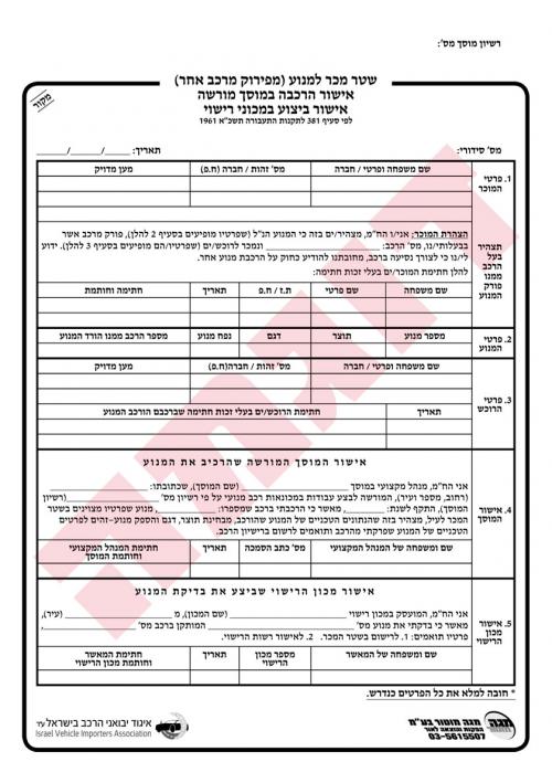 שטר מכר למנוע (מפירוק מרכב אחר) - מוסך מורשה