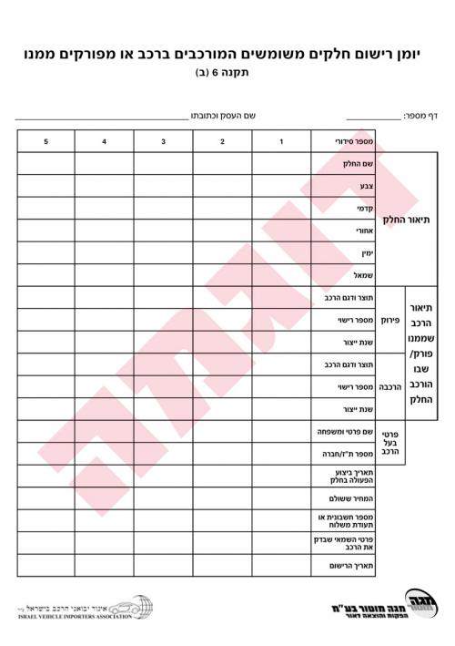 יומן רישום חלקים - פירוק והרכבה הצגה