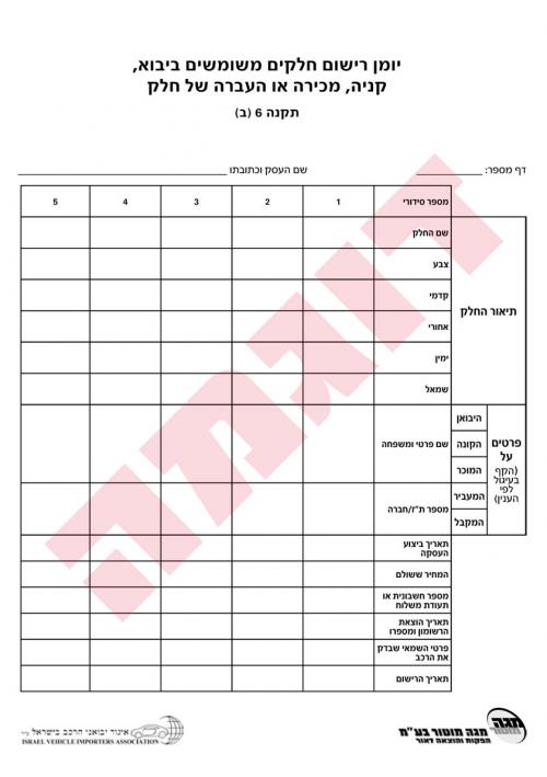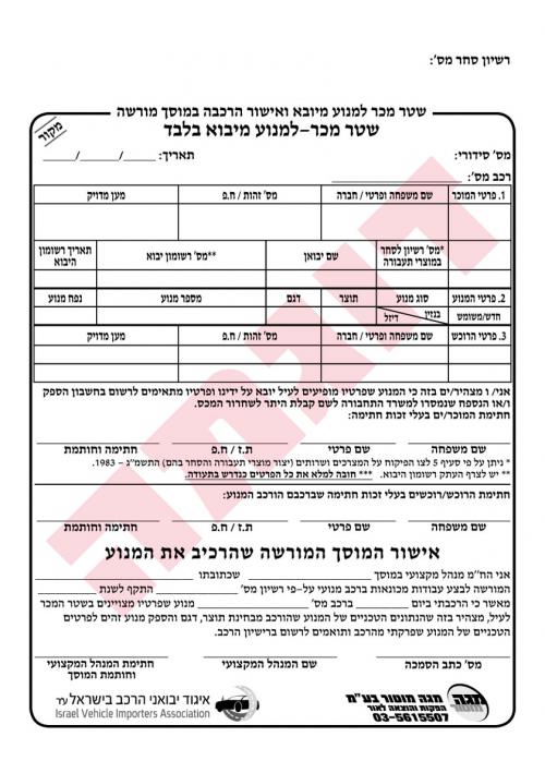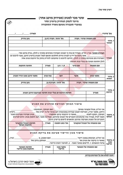 שטר מכר למנוע (מפירוק מרכב אחר) - רישיון סחר הצגה
