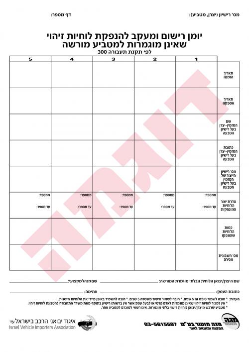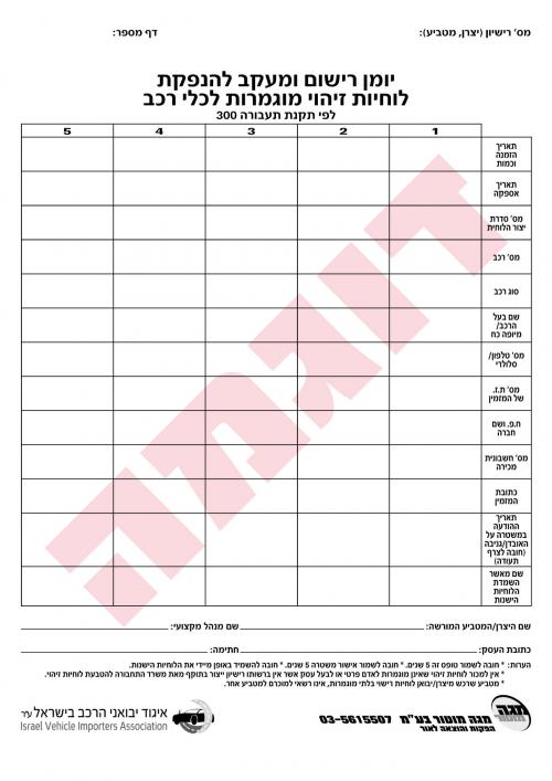 יומן רישום - לוחיות זיהוי מוגמרות לכלי רכב הצגה