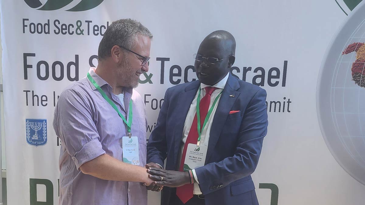 מימין: שגריר דרום סודן בישראל וול מאייר, אריק ואורי בן הרצל, סמנכ"ל פיתוח עסקי במכון המחקר מיגל