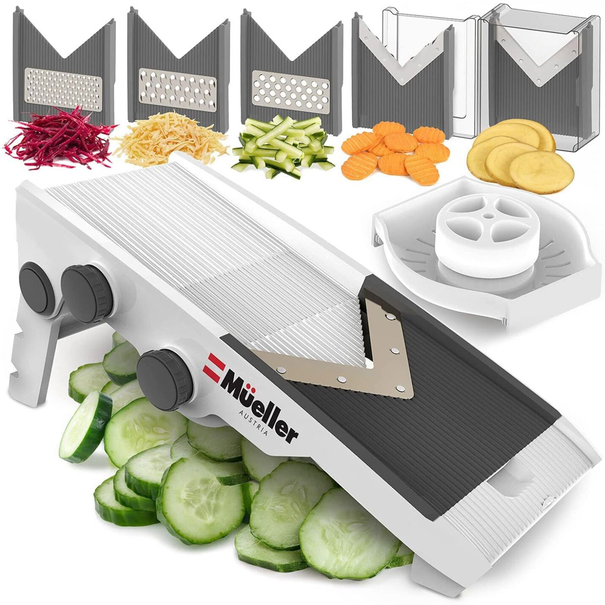 מנדולינה היא אחד ממכשירי החיתוך הטובים ביותר למטבח. היא תאיץ את זמן ההכנה ותאפשר חיתוך ירקות דק ואחיד. אלא שיש להיזהר - הלהבים חדים במיוחד. לכן אפשר להשתמש בקוצצי מזון, העושים עבודה מהירה של חיתוך אגוזים והכנה של סלסה, פסטו ורטבים אחרים. גם כותש שום טוב חוסך זמן. חפש אחד שיש לו חיבור ניקוי עם קוצים כדי לעקור את שאריות השום.