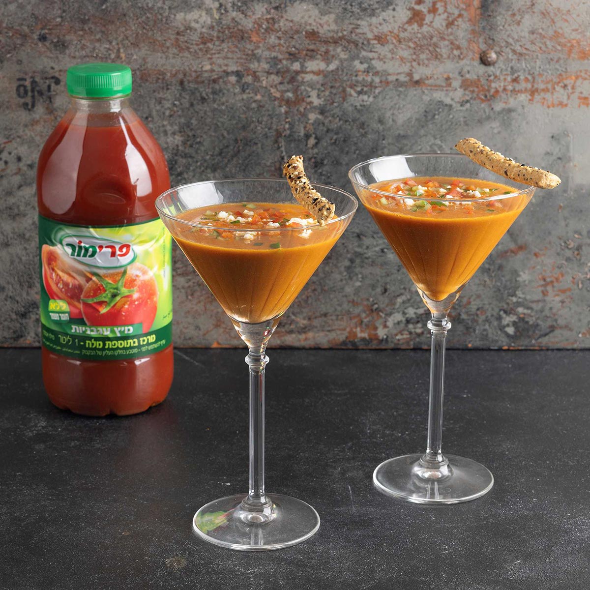 פרימור, יצרנית המיצים הסחוטים הטבעיים, מהמובילות בישראל, מגישה מתכון למנה קלילה וטעימה המתאימה לתפריט מאזן לאחר החגים: גספצ'ו עגבניות עשיר - מרק עגבניות קר, עשיר ורענן, המבוסס על מיץ עגבניות פרימור ומוגש בכוס מרטיני עם גבינת פטה, ירקות קצוצים וגריסיני פריך. המרק הוא דרך נפלאה ליהנות מערכים תזונתיים מיטיבים במתכון פשוט וקל להכנה.