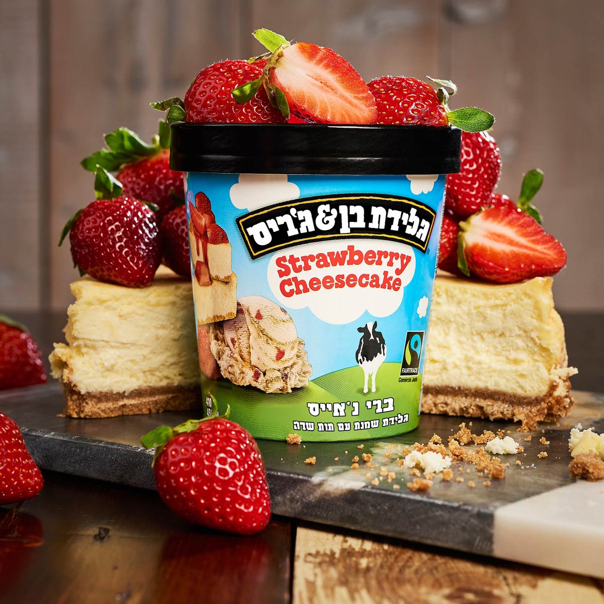 200 גרם גלידת עוגת גבינה עם תות בן אנד ג'ריס