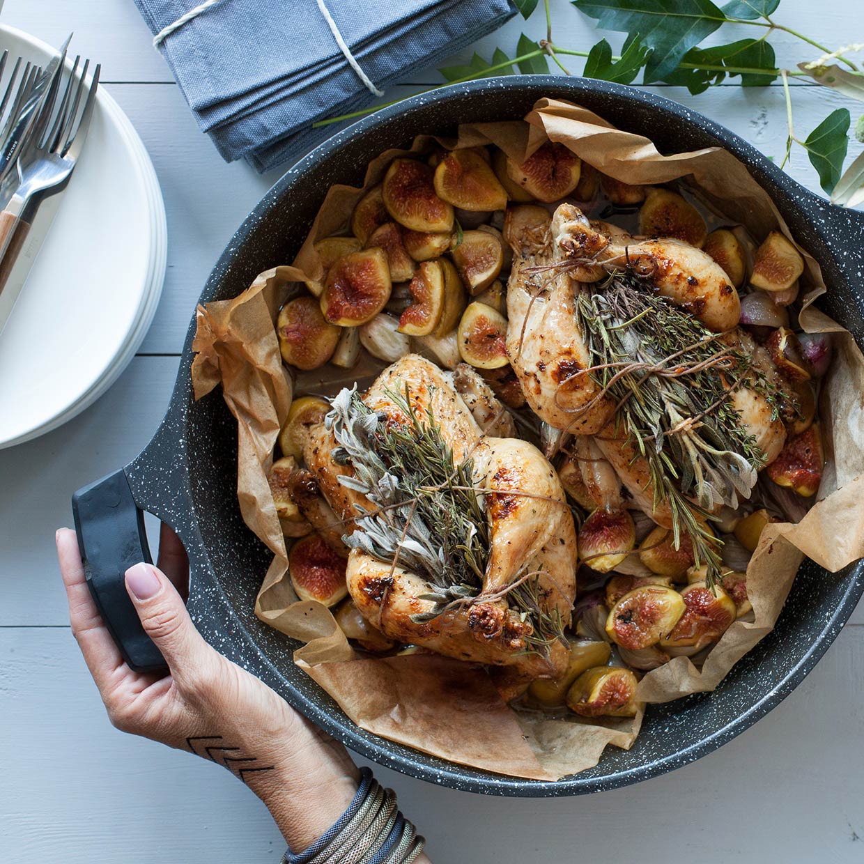 עופיונים צלויים עם עשבים ותאנים
