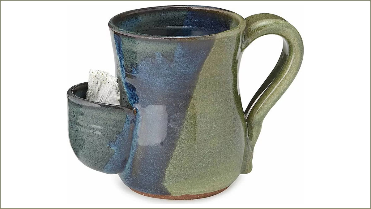 אתר Uncommon Goods שמתמחה בשיווק ומכירה של אביזרים מקוריים מציע ספל מעוצב מיוחד עם תוספת מגניבה - "כיס" צד לתיונים. מעכשיו אפשר להוציא את התיון מהספל ולשים אותו בצד שלו.