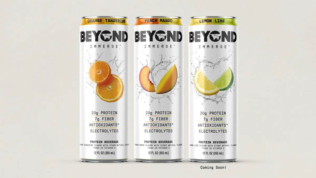 נתוני NIQ מלמדים כי מכירות תחליפי הבשר הצמחיים בקמעונאות האמריקנית צנחו ב־26% בשנתיים האחרונות לאחר שהגיעו לשיא ב־2020. עם שינוי השם השיקה ביונד קטגוריית מוצרים חדשה לחלוטין: משקאות חלבון מוגזים בשם Beyond Immerse, שמכילים עד 20 גרם חלבון צמחי לבקבוק (בעיקר חלבון אפונה, אותו חלבון שבבורגר המקורי), שבעה גרמים של סיבי טפיוקה, נוגדי חמצון כמו ויטמין C ואלקטרוליטים.