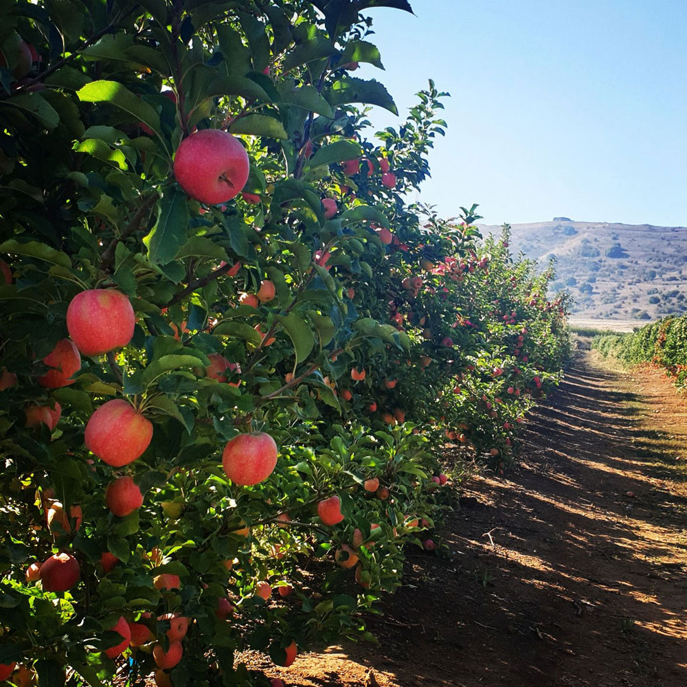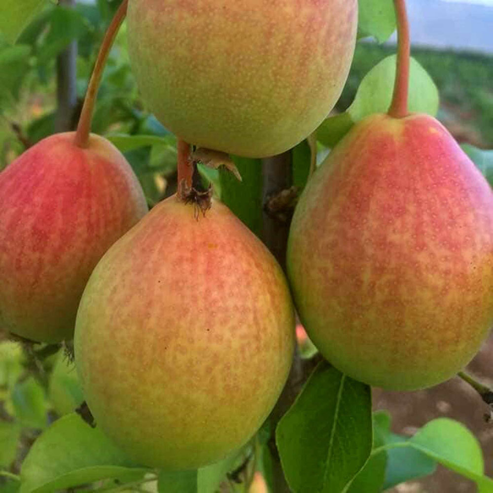 מימין לשמאל: אגס עדן. צילום: פירות בן דור, בננות. צילום: מופ צפון, מטע תפוח מזן פינק ליידי בגולן. צילום: תקשורות יעל שביט, שקדים לפני קטיף. צילום: עמוס לוין פיתוח הגליל.