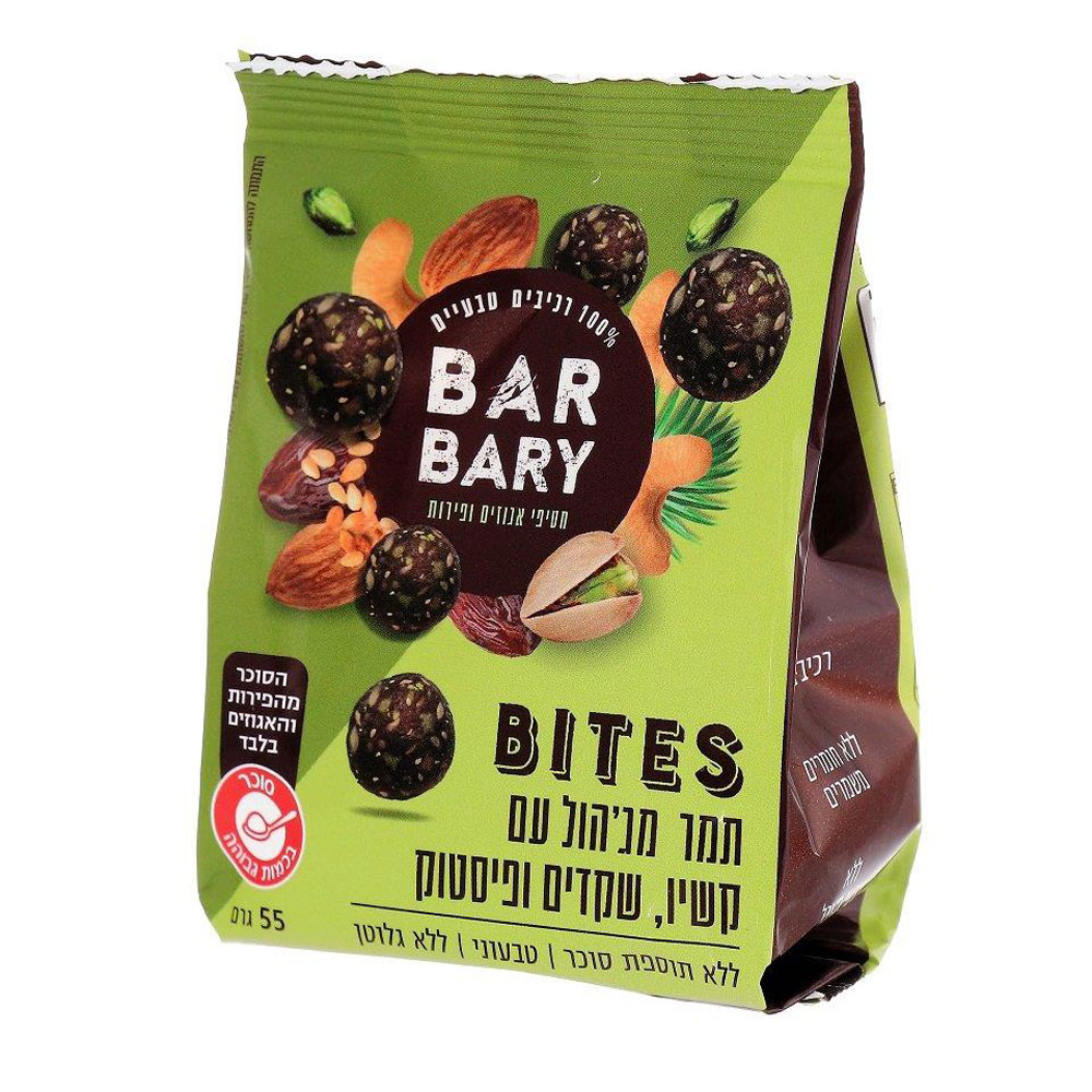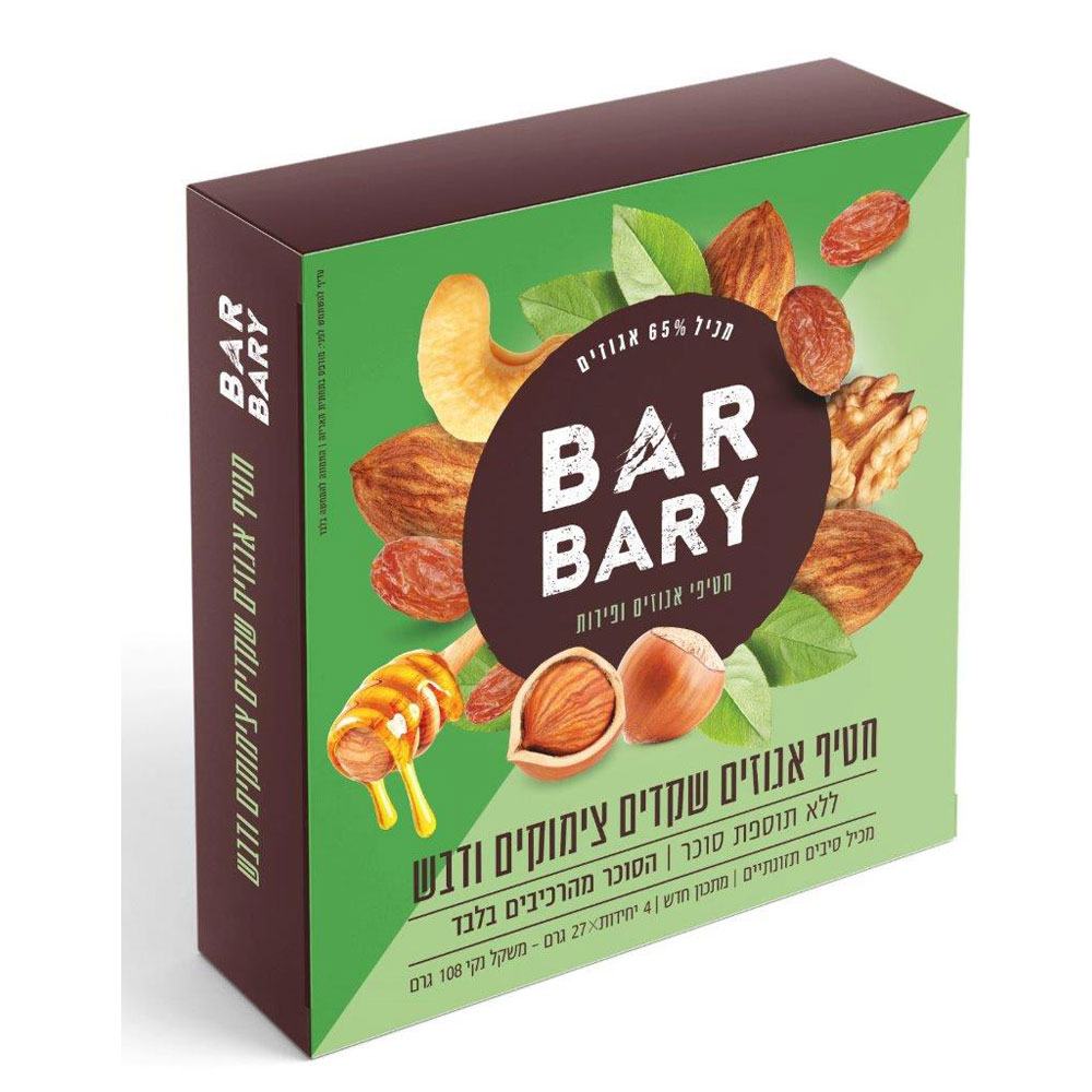 חטיפי אגוזים פירות ודבש של ברבריא: חטיפי בריאות במגוון טעמים, עשויים מ-100% רכיבים טבעיים, טבעוניים, ללא גלוטן, ללא חומרים משמרים וללא תוספת סוכר. חטיף אגוזים שקדים צימוקים ודבש משווק במארז של 4 יחידות (27 גרם לחטיף) וחטיפי הביס ברבריא בייטס משווקים במגוון טעמים - תמר מג'הול עם לוז, קשיו ושברי פולי קקאו ותמר מג'הול עם קשיו שקדים ופיסטוק - משווקים באריזות של 55 גרם.