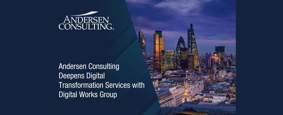 חברת הייעוץ הבינלאומית אנדרסן ((Andersen Consulting מחזקת את יכולות הטרנספורמציה העסקית והדיגיטלית שלה באמצעות הסכם שיתוף פעולה עם Digital Works Group, חברה המפורסמת בהובלת שינויים מורכבים ובפתרון אתגרים עסקיים באמצעות טרנספורמציה דיגיטלית, טרנספורמציה של נתונים, בינה מלאכותית ותהליכים.