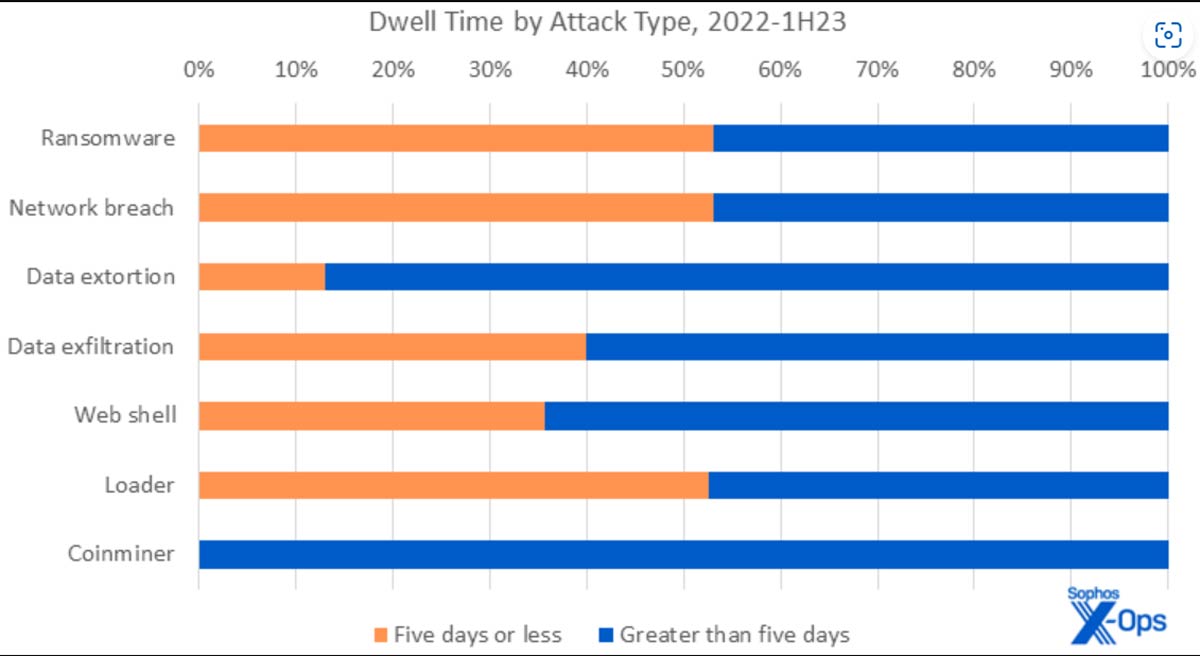 סופוס מסווגת בדוח מתקפות כופר עם זמן שהייה של פחות מחמישה ימים כ"מתקפות מהירות". מתקפות אלו היו 38% מהמקרים שנחקרו. התקפות כופר "איטיות" יותר, עם זמן שהייה של יותר מחמישה ימים, היו 62% מהמקרים.