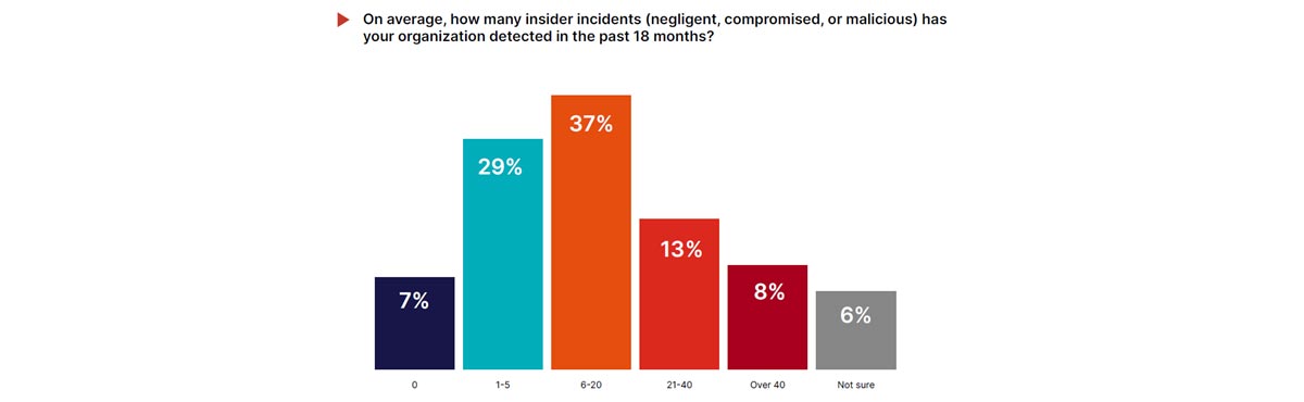 לפי ממצאי הדוח, 77% מהארגונים חוו אובדן נתונים הקשור לגורמים פנימיים במהלך 18 החודשים האחרונים, כאשר 21% דיווחו על יותר מ-20 תקריות במהלך תקופה זו. עבור רבים, תקריות פנימיות הן לא אירועים מבודדים, אלא אתגרים חוזרים ונשנים שמנקזים משאבים ושוחקים את האמון.