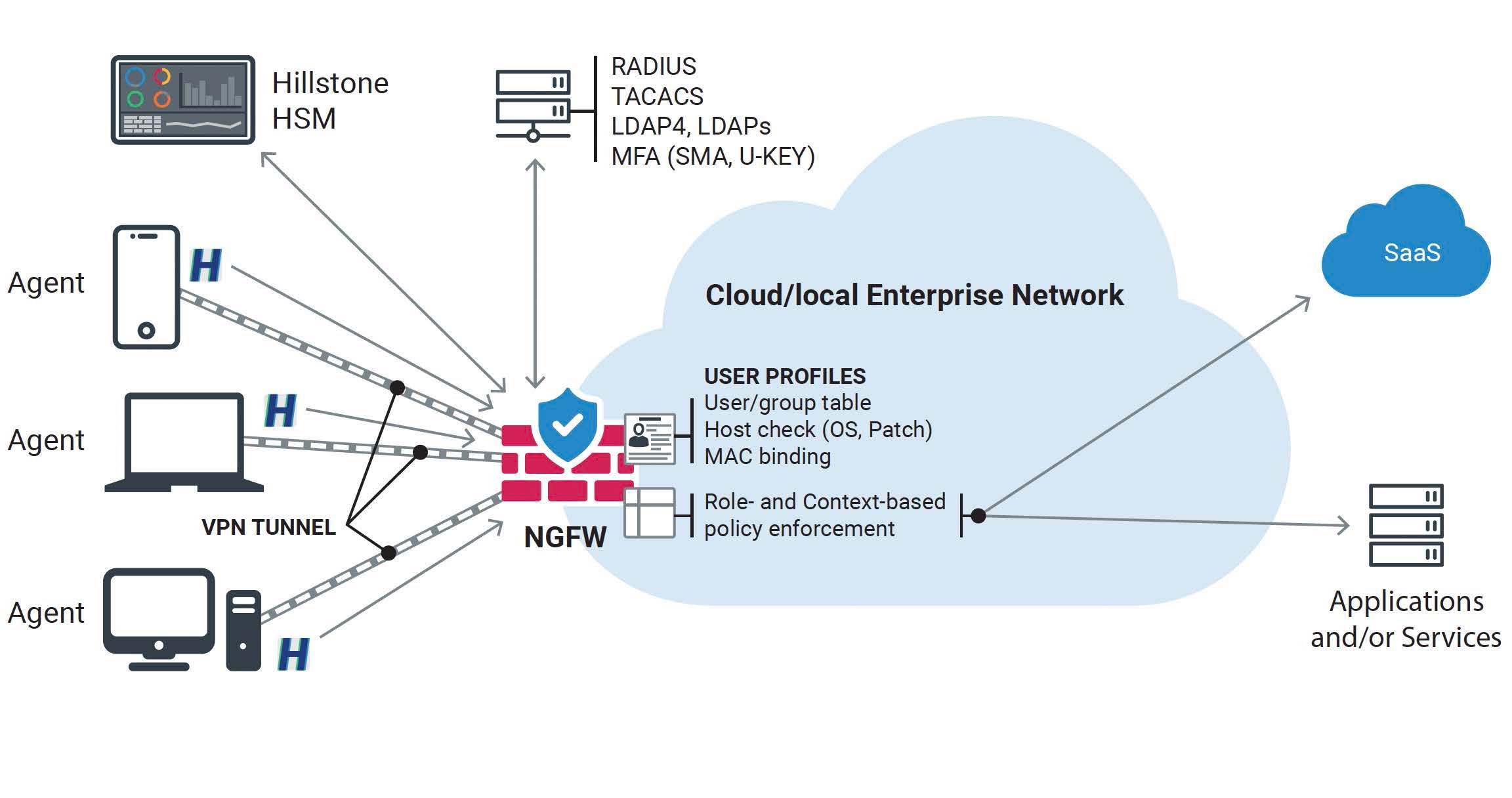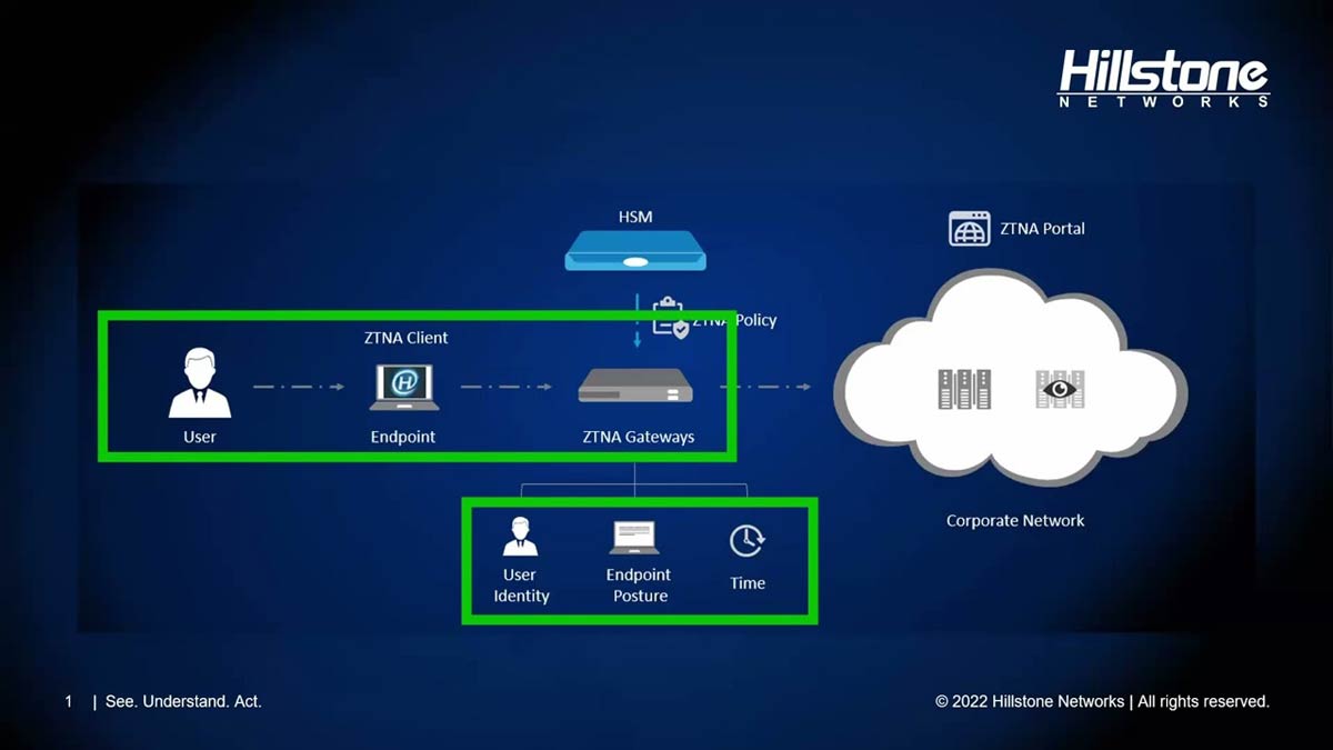 פתרון ZTNA של Hillstone מבוסס על פלטפורמות firewall מובילות בקצה, והוא יכול להעניק הרשאות גישה מדויקות לפי זהות המשתמש וההתקן כמו גם בדיקות מיקום של התקנים, מה שמאפשר אכיפה מדויקת של הרשאות והופך אותו לפתרון ה-SSE האידאלי.