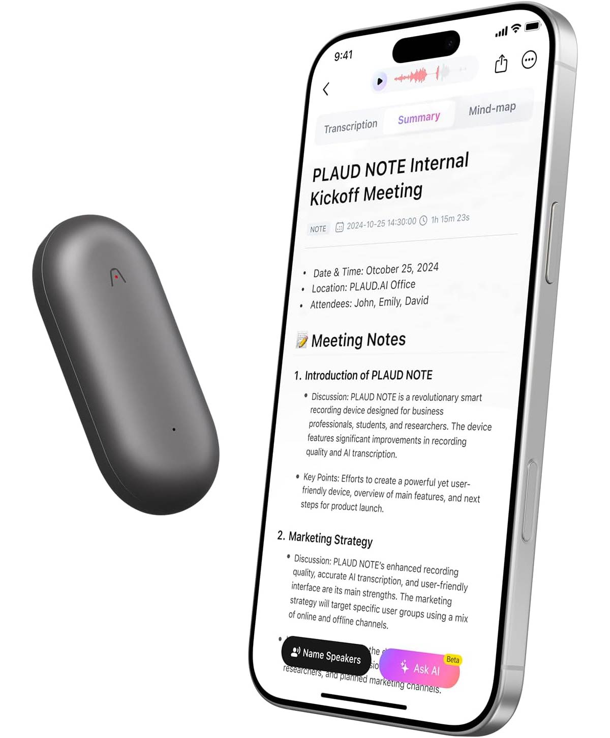 למיזם פלוד (Plaud) מכשיר קומפקטי לביש, דק וורסטילי, נוט פין (NotePin), שמאפשר למשתמש גישה מיידית למערכות וטכנולוגיות של בינה מלאכותית (AI). המכשיר מאפשר לתעד את הסביבה ועוזר למשתמש לרשום תוכניות ומחשבות באופן מהיר ואינטואיטיבי. ממדיו הקומפקטיים של האביזר מאפשרים ללבוש או לענוד אותו כחלק משרשרת או צמיד. המכשיר מקליט את הסביבה, כולל שיחות חשובות בכל מצב. המכשיר הקטן יכול להיות שותף חשוב בכל פגישה עסקית. הוא מתחבר לאפליקציה ייעודית ולפלטפורמות מקוונות.