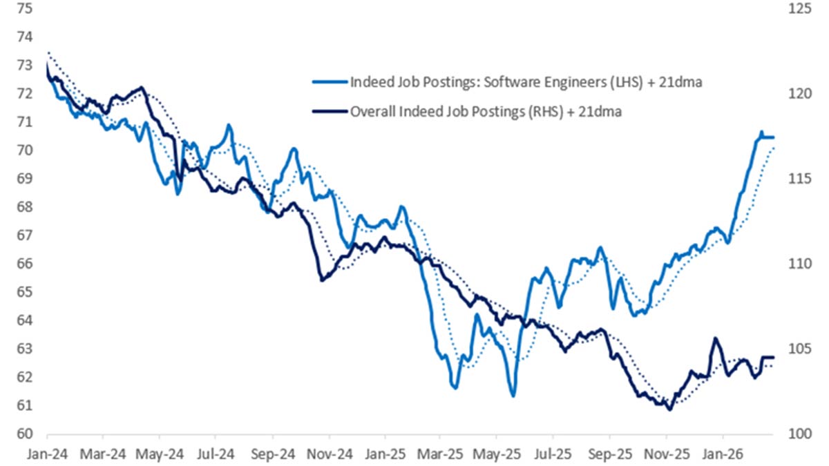 עלייה במודעות הדרושים לחיפוש מהנדסי תוכנות AI. מקור: Citadel Securities