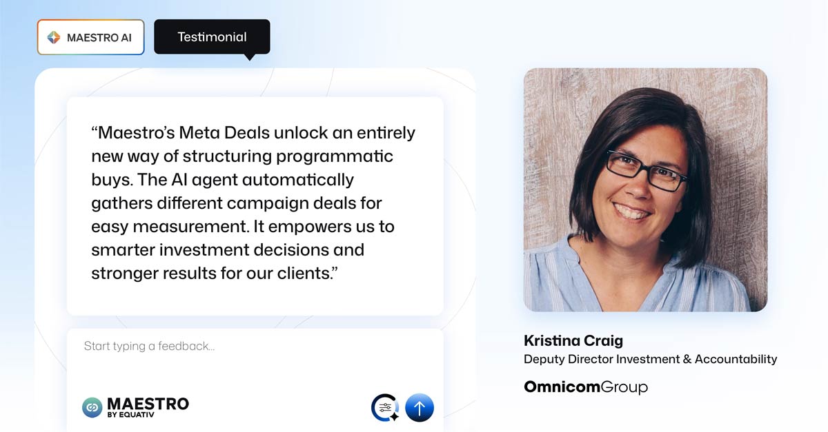 "עסקאות המטא של Maestro פותחות דרך חדשה לחלוטין למבנה רכישות פרוגרמטיות. במקום להסתמך על מכרזים מבודדים, סוכן הבינה המלאכותית אוסף אוטומטית עסקאות קמפיין שונות למדידה נוחה. היא מאפשרת לנו לבדוק יותר, ללמוד מהר יותר ולחדד אסטרטגיות עם שליטה רבה בהרבה—מה שמוביל בסופו של דבר להחלטות השקעה חכמות יותר ולתוצאות חזקות יותר עבור לקוחותינו," מסבירה קריסטינה קרייג, סגנית מנהלת השקעות ואחריות בקבוצת Omnicom.