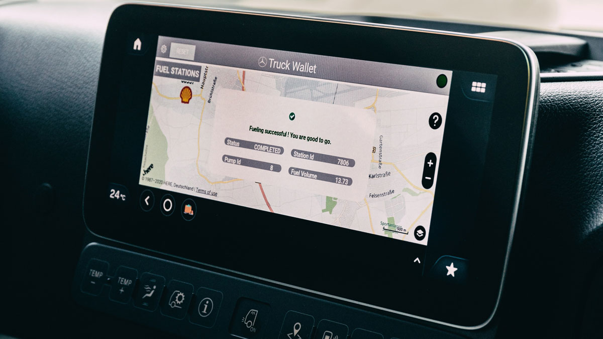 חטיבת המשאיות של מרצדס עורכת בדיקות מעשיות ראשונות עם אב-טיפוס מסדרת Actros לתשלום דיגיטלי על תדלוק בתחנות השירות של Shell בשטוטגרט שבגרמניה. מדובר בשירות תשלום דיגיטלי מהיר. אב טיפוס חדש של כרטיס דלק דיגיטלי פותח בשיתוף עם Shell כדי להפוך את Truck-ID ואת ארנק המשאיות לשימושיים בהרשאות תשלום בתחנות התדלוק.