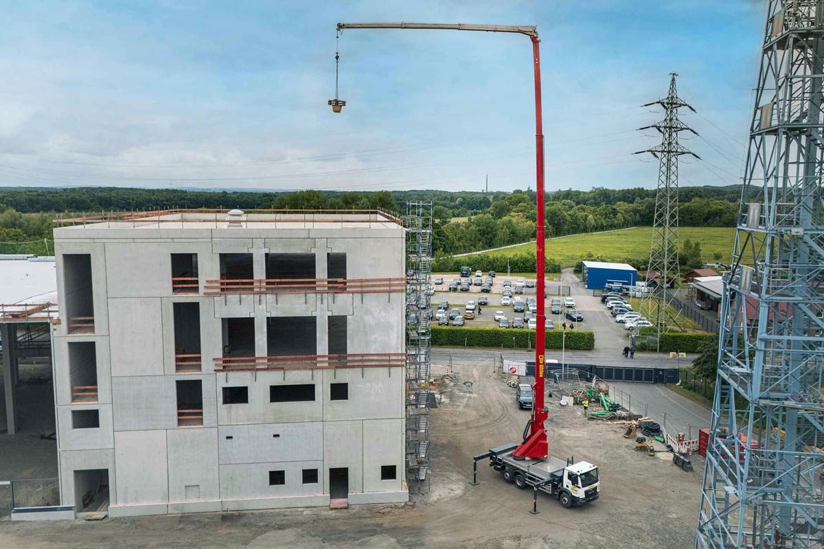 בפרויקט של הקמת מרכז לוגיסטי בעיר וֶרנֶה שבגרמניה, נבחן המנוף החדש בעבודה על גג בגובה 21 מטרים במבנה בן ארבע קומות. AK 48e משמש להעלאת משטחי זכוכית במשקל של עד 400 ק"ג לגג, והציב אותם בדיוק במיקומים שנדרשו להמשך הבנייה.