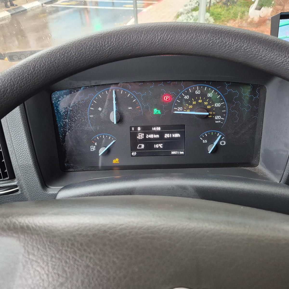 טווח הנסיעה הנומינלי של המשאית הוא 450 ק"מ, אולם לדברי עומרי, הטווח בפועל קרוב יותר ל־350 ק"מ. הגורם המרכזי ביותר שמשפיע על צריכת האנרגיה - ולכן גם על הטווח - הוא הנהג. בנסיעת המבחן הקצרה שלי לא בחנתי כמובן את הנושא הזה, לפיכך איני יכול לומר איזה ציון הייתי מקבל על הנהיגה שלי מבחינת חיסכון באנרגיה. מצד שני, חוויית הנהיגה במשאית הזו, ובכל משאית חשמלית למעשה, שונה מאוד מהנהיגה במשאית בעלת מנוע דיזל.