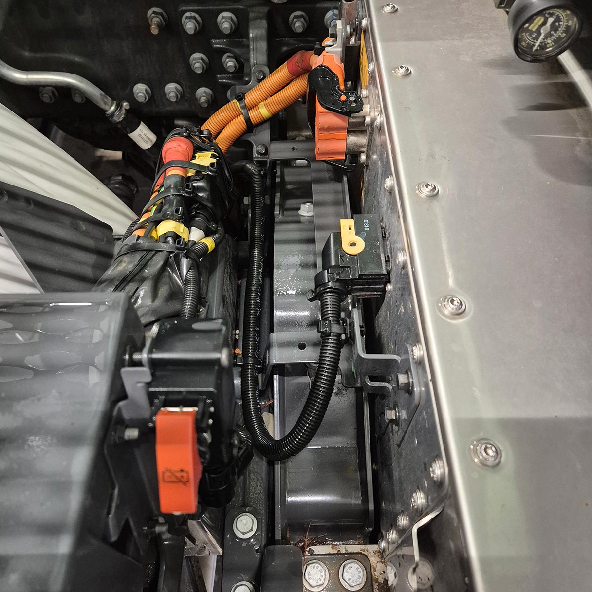 FE החשמלית שעליה נהגתי היא בעלת משקל כולל של 26 טונות ותצורה 6X2, עם צמד סרנים מאחור. הקדמי ביותר הוא סרן עם היגוי עם גלגל אחד בכל צד, והאחורי הוא סרן מניע עם שני גלגלים בכל צד (דאבל־ג'נט).