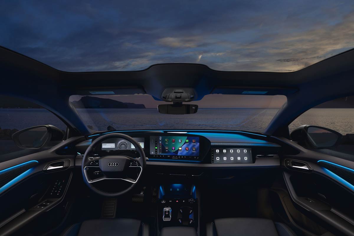 בגזרת תא הנוסעים, אודי מציגה שיפורים עיצוביים לממשק המולטימדיה (MMI) ועיצוב מעודכן לגלגל ההגה. בשורה מעניינת לחובבי הנדסת האנוש ה"מסורתית" היא חזרתה של גלגלת הגלילה לשליטה נוחה יותר בפונקציות. אודי מציגה גם תכונה חדשה בשם "Power Nap Mode" (מצב תנומה), המיועד להפעלה בזמן שהרכב מחובר לעמדת טעינה. מצב זה יוצר סביבה מרגיעה בתא הנוסעים ומאפשר לנהג ולנוסעים להירגע בזמן המתנה.
