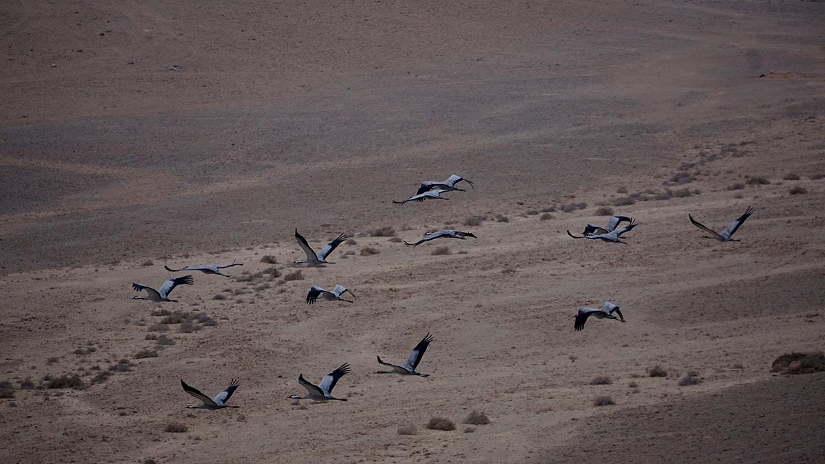 אלפי עגורים נצפו ונשמעו בשמי הערבה התיכונה, בדרכם מארצות הקור באירופה אל המדבריות החמות בדרום. כבכל שנה בעונה זו חולפים מעל ישראל מאות אלפי עגורים, רובם עגורים אפורים, והערבה התיכונה משמשת כתחנת עצירה שבה להקות העגורים מוצאות מקורות מים ומזון אשר מסייעים להן להמשיך את מסען הארוך.