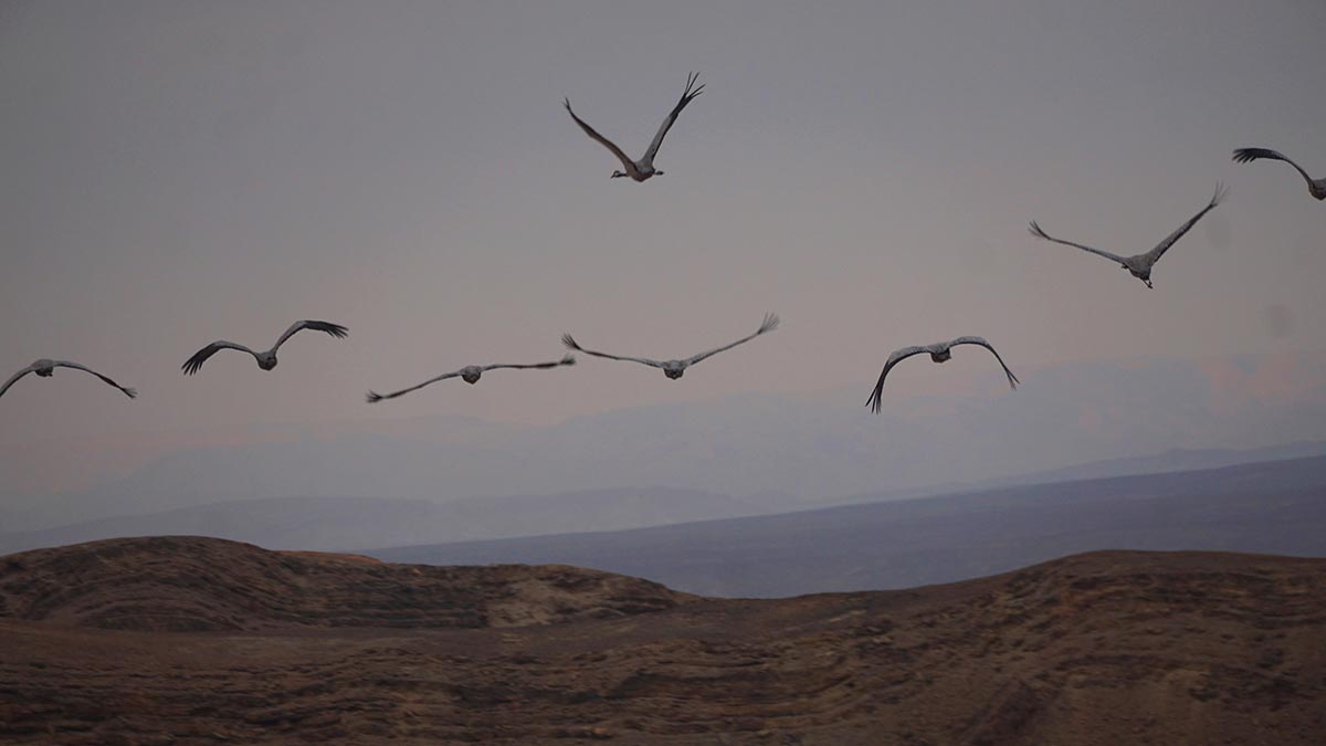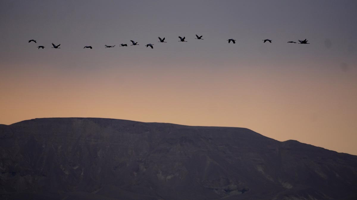 נדידת עגורים בשמי הערבה התיכונה. צילום: עדי מטמון, הערבה התיכונה