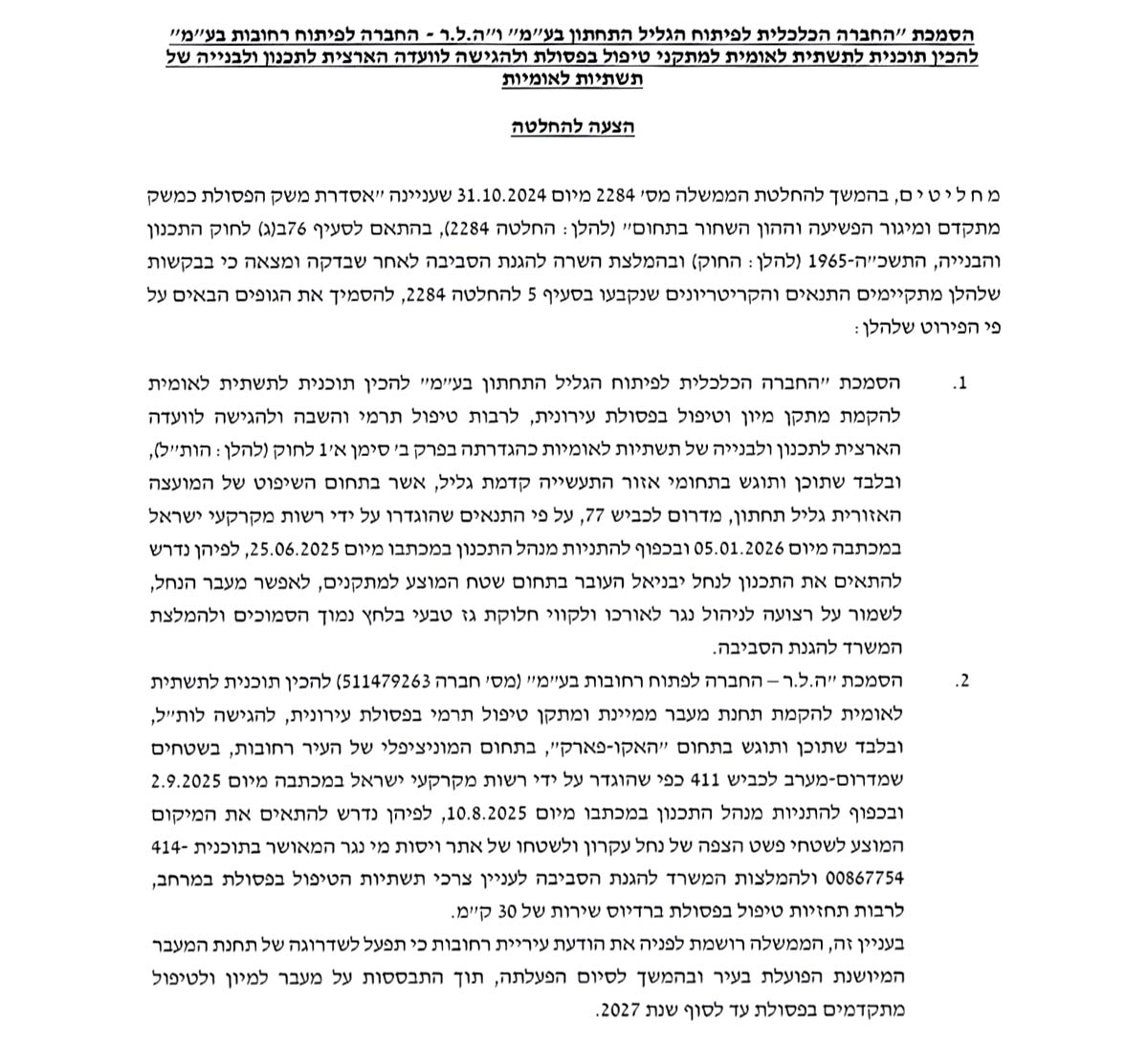 במסגרת ההחלטה הוסמכו החברות הכלכליות לפעול כגופים מתכננים לצורך גיבוש תוכנית תשתית לאומית למיתקני טיפול בפסולת, אשר תבחן את הצרכים העתידיים של משק הפסולת בישראל, תמפה אזורי עדיפות ותציע פריסה מיטבית של מיתקני קצה, בכלל זה מיתקני מיחזור, מיון והשבת פסולת לאנרגיה, תוך איזון בין שיקולים סביבתיים לתכנוניים לכלכליים ולחברתיים.