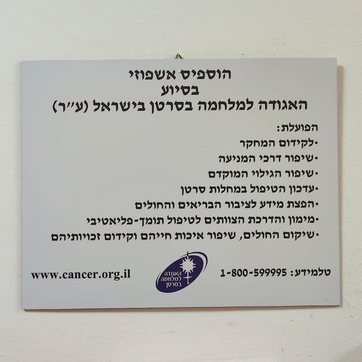 בימים אלו, הודות למימון האגודה למלחמה בסרטן, הוקם הוספיס אשפוזי חדש בחיפה אשר מופעל על ידי צוות בית החולים האיטלקי. לקראת פתיחתו התקיימה סדרת הדרכות מקצועיות של מומחי האגודה למלחמה בסרטן לצוותי ההוספיס. ההוספיס ייקרא על שם פרופ' אברהם קוטן ז"ל, יו"ר האגודה למלחמה בסרטן לשעבר, מעמודי התווך של תחום הרדיותרפיה בישראל, והיועץ האונקולוגי של בית החולים האיטלקי במשך שנים רבות.