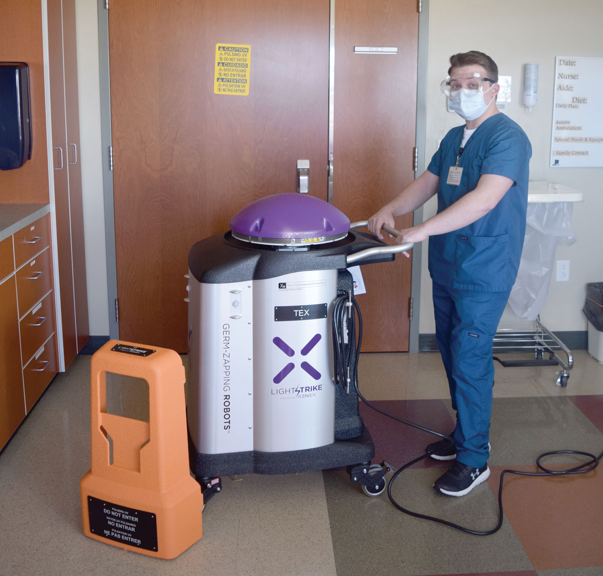 חיידקים ונגיפים אחדים מתחילים לפתח עמידות לחומרי ניקוי ואנטיביוטיקה, ואפילו לג'ל לחיטוי ידיים. בתי חולים פונים לטכנולוגיה חדשה כדי לשפר את הפרקטיקה שלהם בחיטוי וניקיון. רובוטים מסוג LightStrike מתבססים על פרצים חזקים של אור UV כדי להשמיד באמצעותם חיידקים, פתוגנים ונגיפים. הרובוטים פועלים בזריזות ואינם זקוקים להפוגה לשם צינון או חימום. סגל בית החולים יכול לחטא באמצעותם כמה חדרים כל יום.