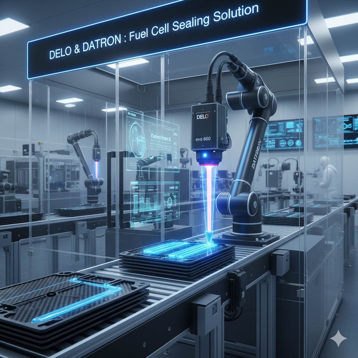 החברות DELO ו-DATRON פיתחו פתרון מערכת משותף המאפשר לבצע איטום של תאי דלק ברמת אוטומציה ודיוק גבוהה. השילוב בין אטם נוזלי המתקשה במהירות וטכנולוגיית יישום באור של DELO לבין מערכת הדיספנסינג המהירה של DATRON, מקצר משמעותית את זמני המחזור ומגביר את אמינות התהליך, הן במהלך הייצור והן בפעולה המאוחרת של תאי הדלק.