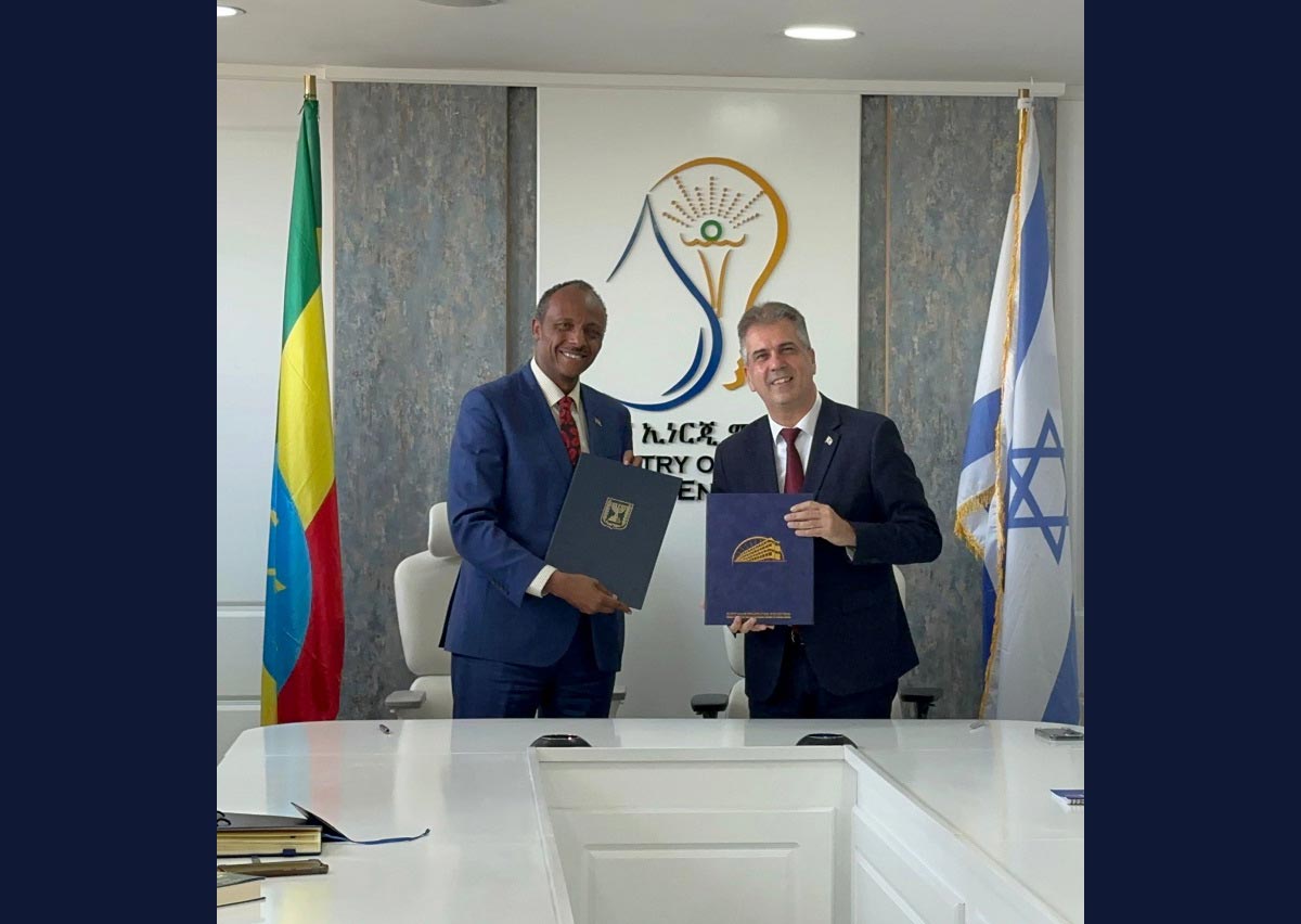 שר האנרגיה והתשתיות אלי כהן ומקבילו שר האנרגיה והמים של אתיופיה הבטמו איטפה ג'לאטה. צילום: © משרד האנרגיה והתשתיות