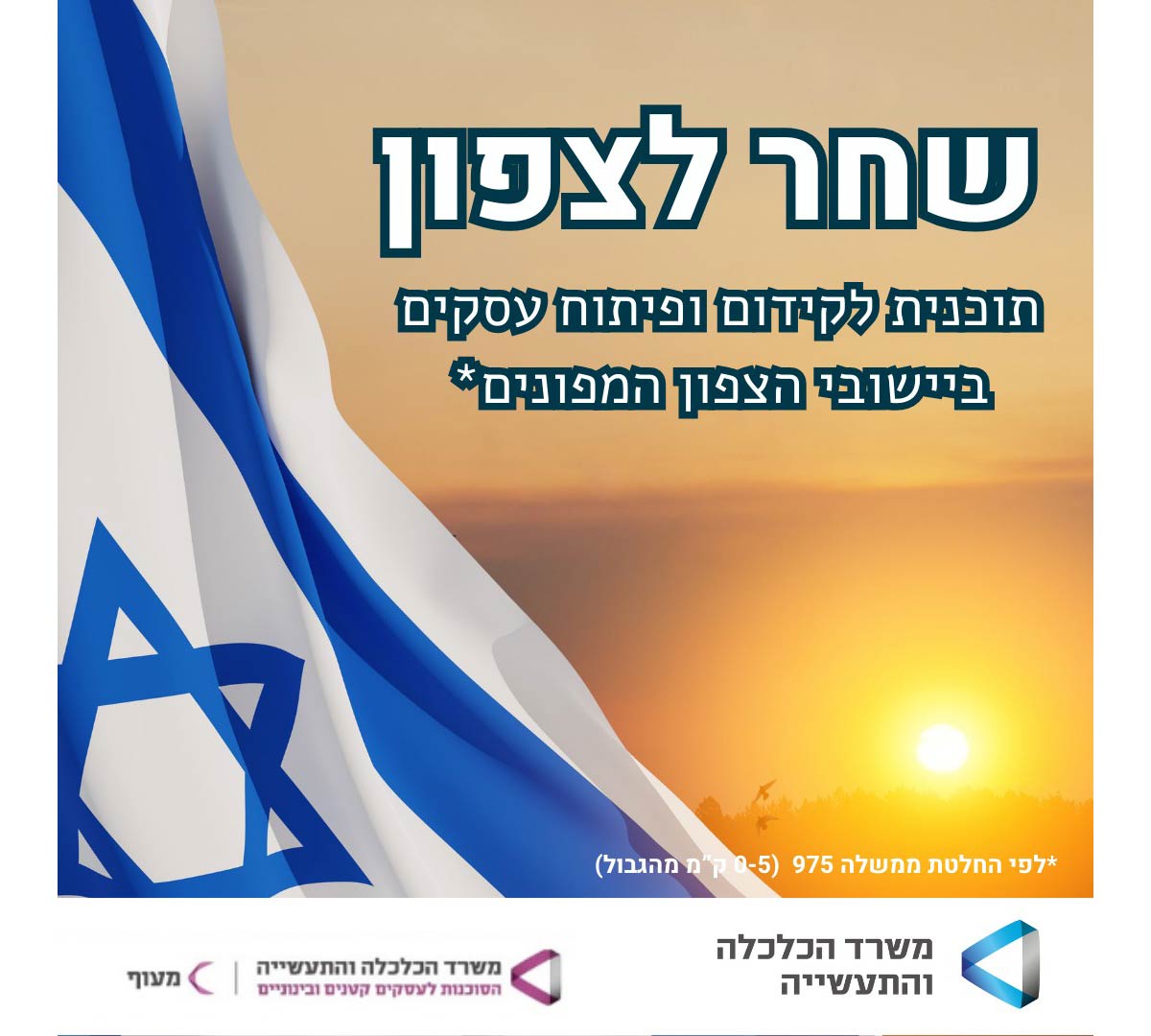 הסוכנות לעסקים קטנים ובינוניים במשרד הכלכלה והתעשייה משיקה את תוכנית "שחר לצפון", שנועדה לסייע לעסקים קטנים ובינוניים באזור קו העימות בצפון להשתקם, להתייצב ולחזור לפעילות כלכלית מלאה לאחר התקופה המאתגרת.