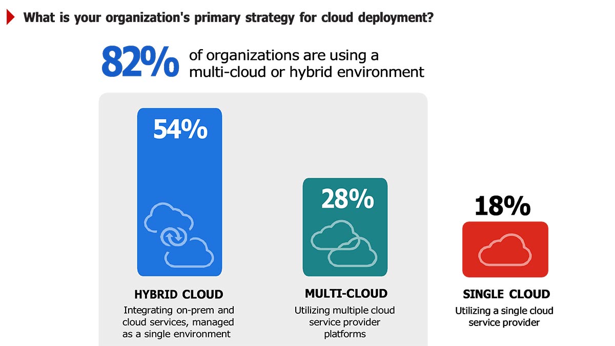 בנוסף לכך, המעבר לענן ההיברידי עלה ל-54%, מה שמאפשר לארגונים לשלב את הסביבות המקומיות שלהם עם פלטפורמות ענן ציבורי. גישה זו מאפשרת לארגונים למטב את פריסות היישומים בהתבסס על הצרכים שלהם, מה שמדגיש את האיזון בין בקרה ותאימות. לדוגמה, צוותי IT יכולים להשתמש בעננים ציבוריים עבור יישומים המיועדים ללקוחות, תוך שמירה על בטיחות הנתונים הרגישים בסביבות הפרטיות שלהם.